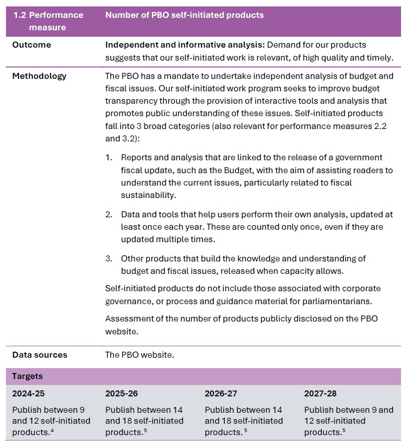Source: Parliamentary Budget Office, Corporate Plan 2024-25