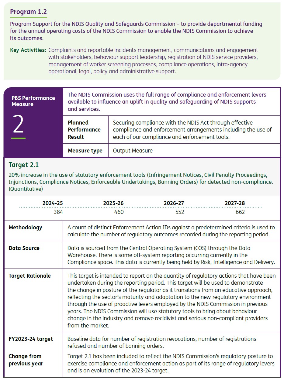 See also the examples below of entities who incorporate a target rationale into their performance measures.