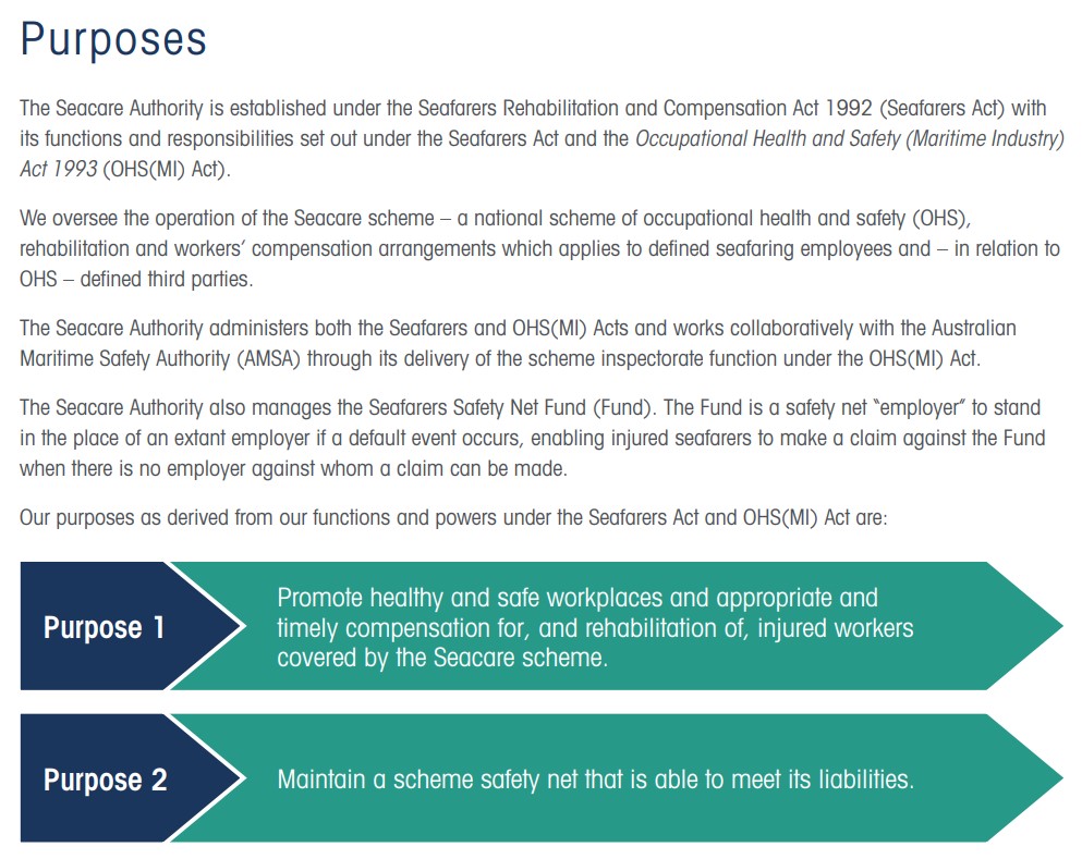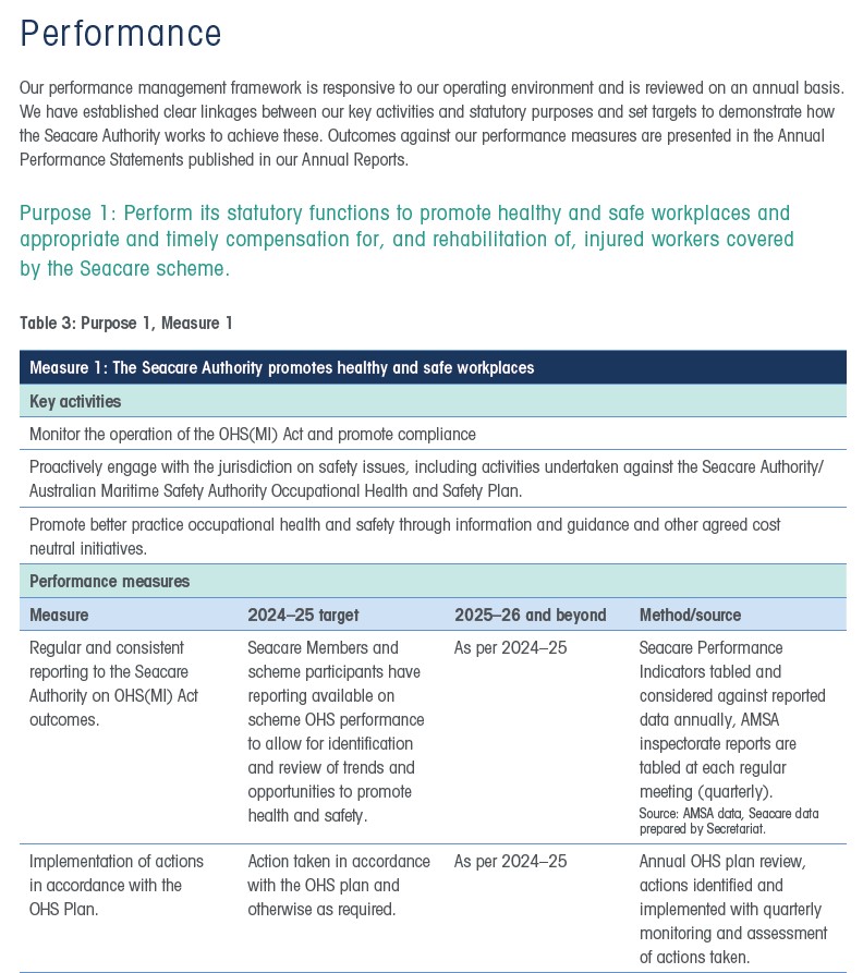 2024–25 Seafarers Safety, Rehabilitation and Compensation Authority Corporate Plan (pages 3 and 10)