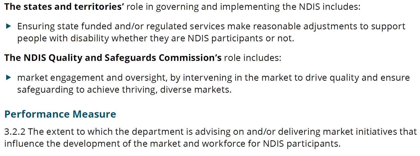 Entities often do this by outlining the respective responsibilities of other entities who contribute to their performance outcomes within the performance measures as demonstrated in the examples below.