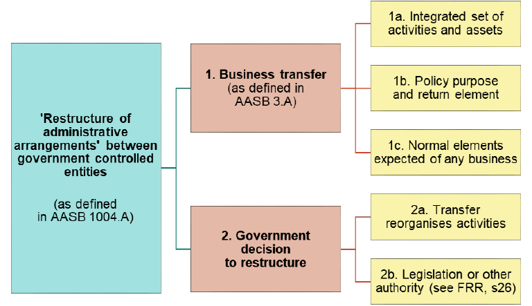 For the purposes of restructures of administrative arrangements in AASB 1004, section 26(2)(a) of the FRR defines ‘government department’ as any government controlled entity. For further detail on accounting for restructures of administrative arrangements, refer to paragraphs 54 to 59 of AASB 1004 and RMG 118.