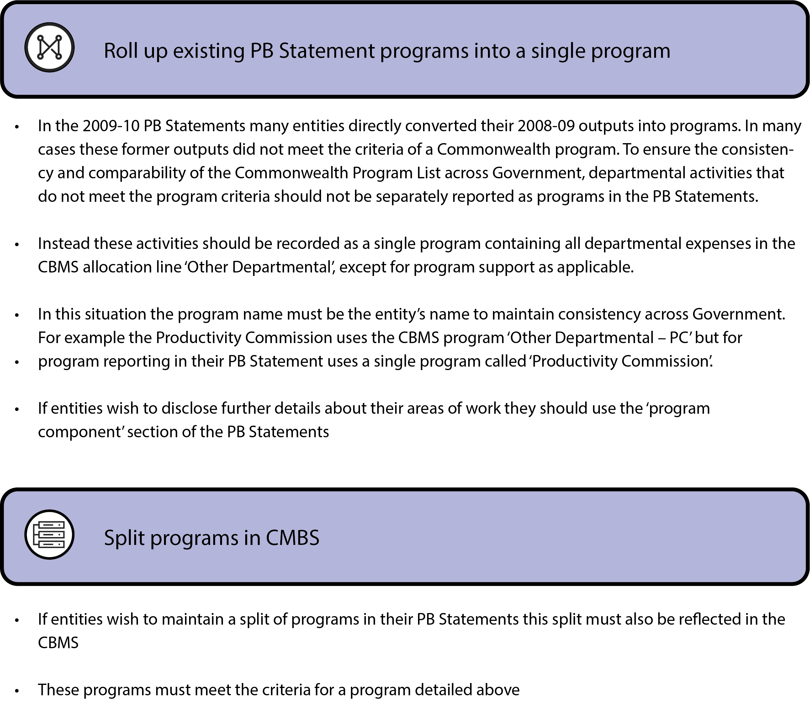 Recording of Commonwealth Programs in CBMS and the PB Statements